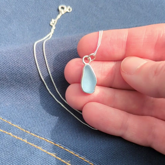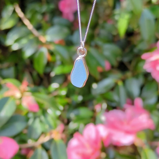 The Cornflower Blue coloured sea glass is set in recycled fine silver & sterling silver and is hand filed, hand sanded and hand polished to a high shine. It comes with an 18” silver chain that is a beautiful length to wear and to show off the pendant.