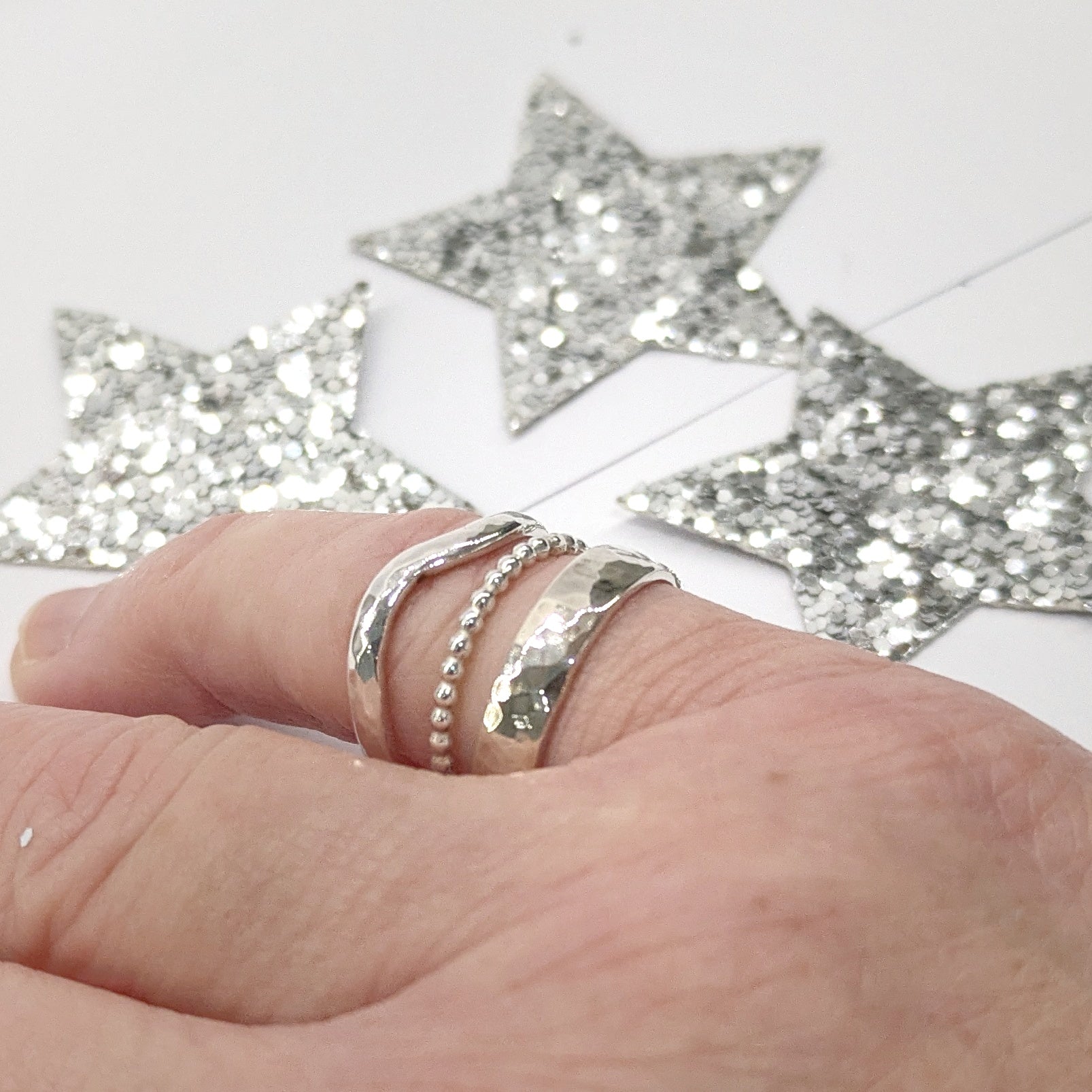 Run your hand through the sun warmed sand and relax. This Tiny Pebbles Silver Ring will remind you of your favourite beach!